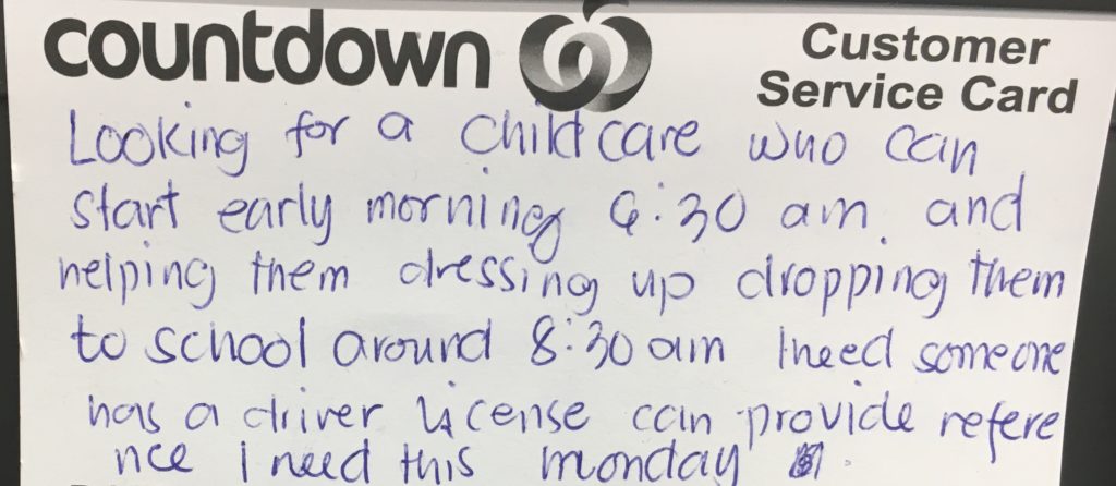 • The hope was to find a full time job or something for my month in Christchurch. But, after lots of searching and resume sending with no luck, I pursued an advertisement for a babysitting job that I found on a grocery store notice board. It was random but they said yes! The family was quite welcoming and I got pocket money! Win win.