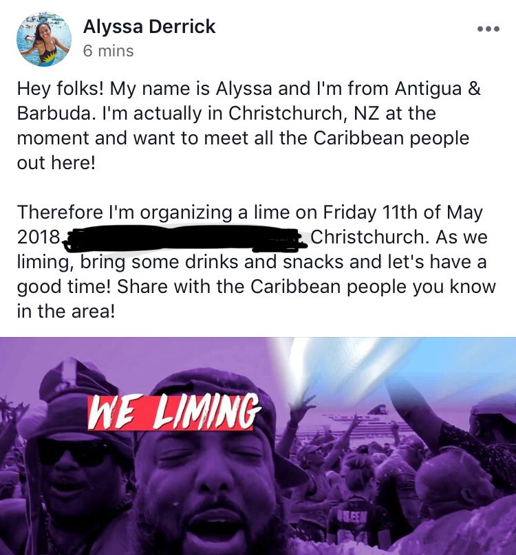 • After living in Auckland for a lil bit and realizing there were lots of Caribbean students studying in NZ, I decided to extend the search to Christchurch. I literally strutted up on a University campus where I heard Caribbean students were studying, walked into the scholarship office and inquired about any information they had on people studying there. Funnily enough this was the ONE semester where they had no one in house! Someone was coming the following semester but unfortunately I would not be there to catch them. Ah wells, I tried 🤷🏽‍♀️.